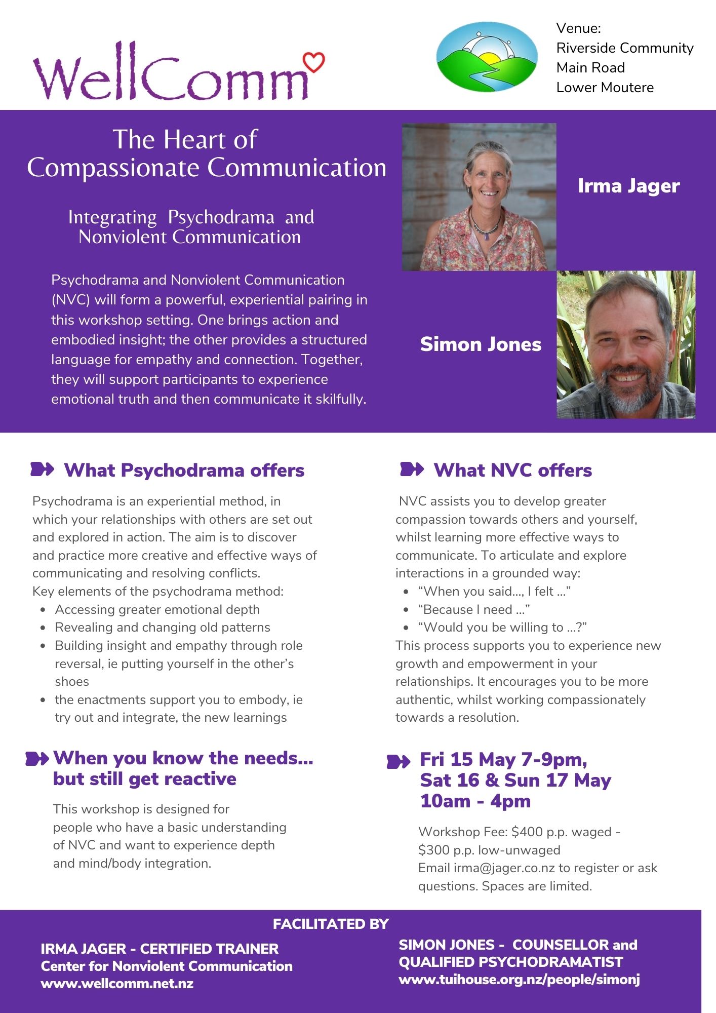 “Somehow Irma managed to combine a workshop with complete strangers – into a safe environment for us to be vulnerable, while bringing in humour and strong connection. Not easy?! Thank you with all our heart. We are softer with each other, and are both keen to keep playing and practicing the tools NVC uses and provides.”