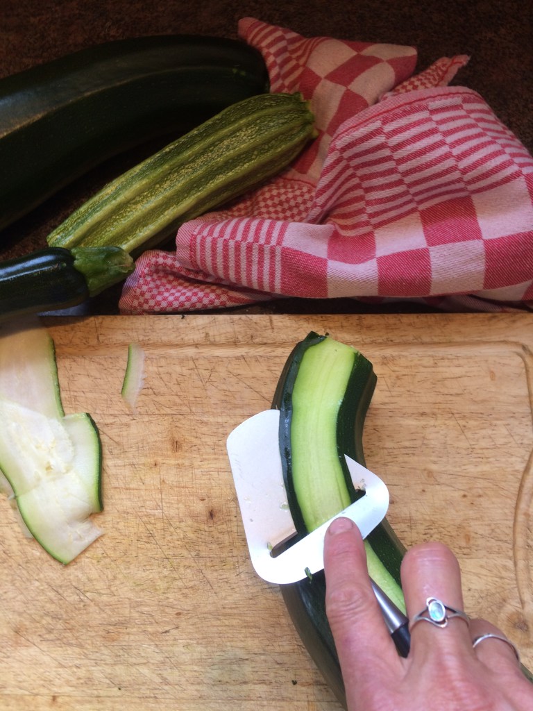 2. Slice your zucchini. I used my trusted, very Dutch, cheese slicer.