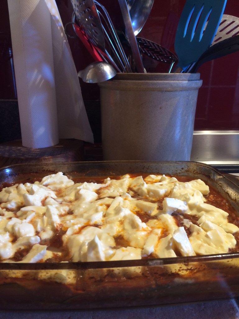 8. Add your choice of cheese… I used home-made, fresh mozzarella – lucky me!
